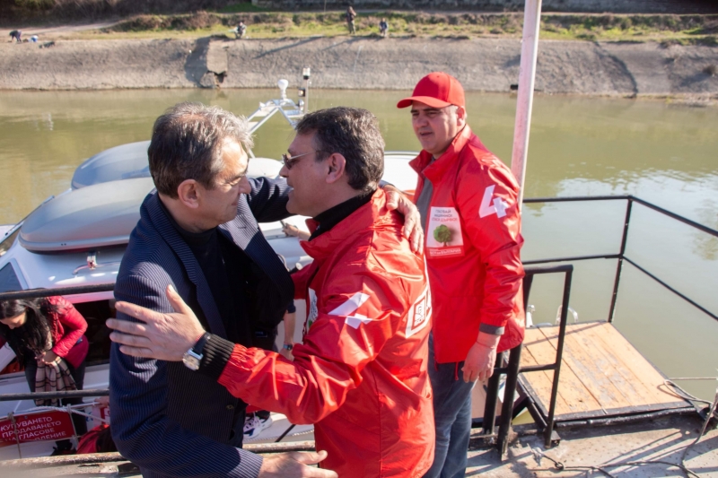 "Лодката на Свободата" по Дунав от Видин до Силистра, акустира на Козлодуйския бряг. Водачът на листата на БСП в Област Враца Анастас Попдимитров посрещна колегата си от Монтана, Атанас Костадинов.