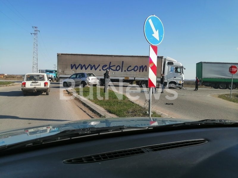 Катастрофа с кола и ТИР е станала преди минути край Враца, видя първо репортер на агенция BulNews.
