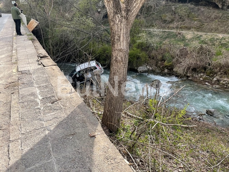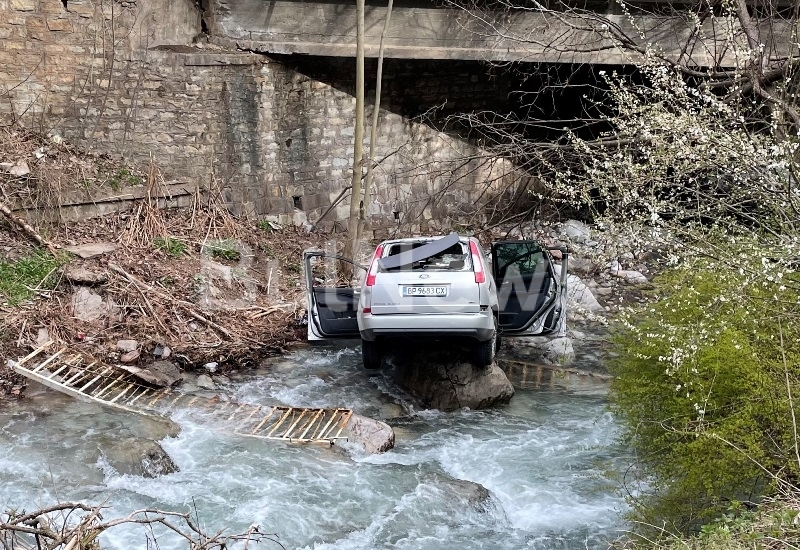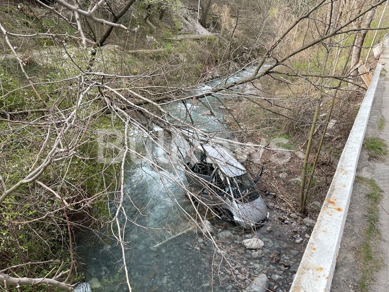 Зрелищната каскада е станала снощи. По неофициална информация водачът на колата е пътувал от село Згориград в посока областния център, когато на ляв завой изгубил контрол над управлението. Колата се забила в оградата на моста, при което я съборила, излетяла от пътното платно и паднала в коритото на реката.