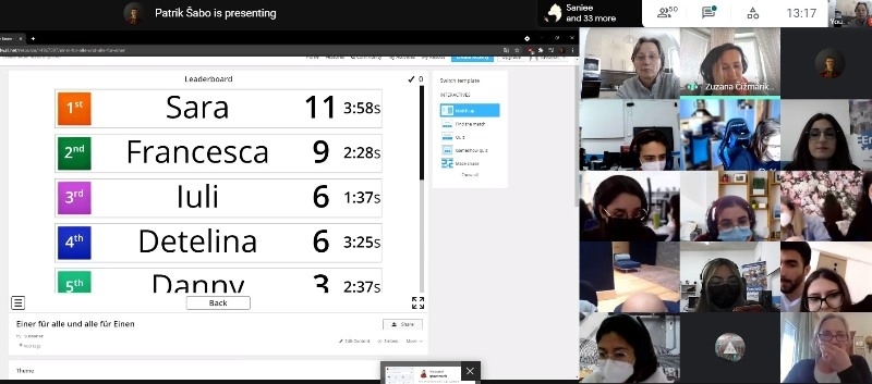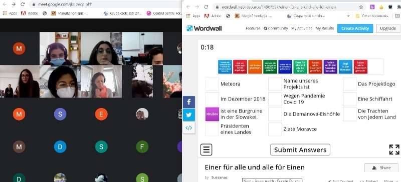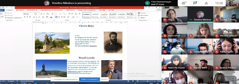 Ученици от 9 и 10 клас oт СУ "Христо Ботев" във Враца, с ръководител Детелина Николова участваха в четири дневна онлайн среща по проект „Един за всички, всички за един”, програма „Еразъм +”, № 2018-1-SK01-KA229-046287_2. Виртуален домакин беше училището от Италия. Учениците работиха заедно в платформата Google Meet и създаваха продукти в Canva, Padlet, Kahoot и комуникираха с ученици от партньорските училища от Словакия, Авствия, Италия, Румъния и Гърция. Всеки от партньорите в проекта представи своя продукт – рекламна брошура на родния си град. След това учениците създадоха куиз във вид на игра в платформата Canva. Срещата беше последна от успешно проведения двугодишен проект.
