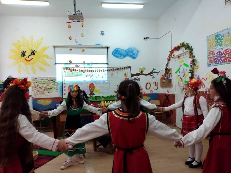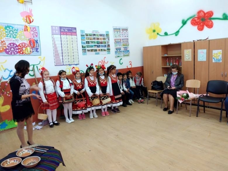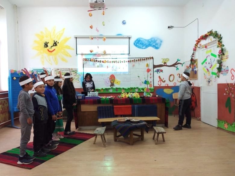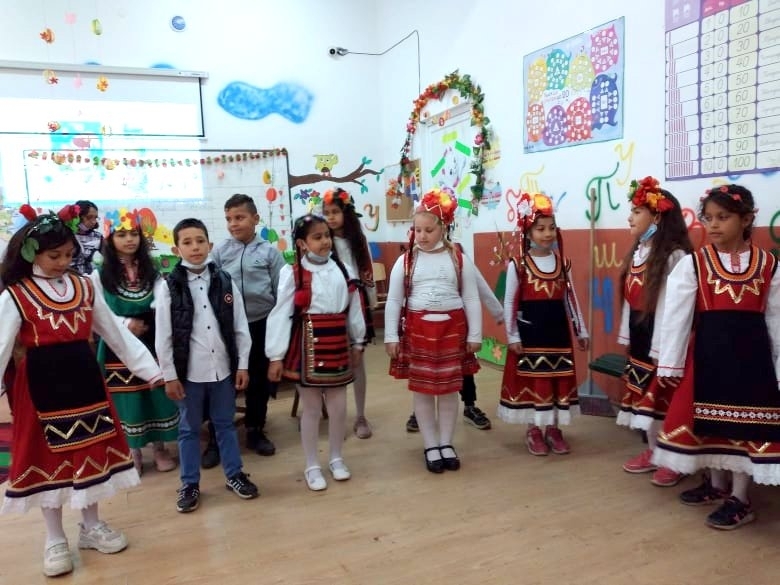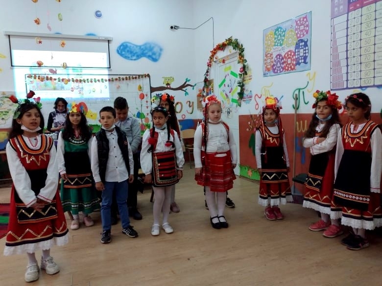Под ръководството на учителките Искра Райчева и Мариела Йорданова, учениците от 1 и 2 клас пресъздадоха народния обичай Благовец с изпълнение на автентични ритуали, наричания и песни. Те представиха драматизация на приказката “Вълкът и седемте козлета“, както и песни и танци свързани с обичаите Лазаровден и Цветница.