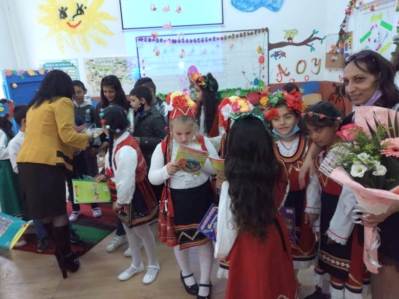 Инж. Тодорова изненада децата с присъствието си и подари на всеки ученик по една книжка с приказки с пожелания.