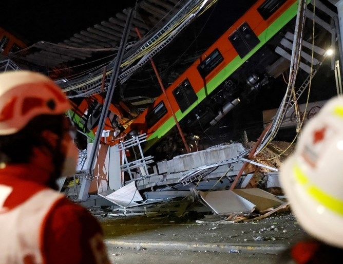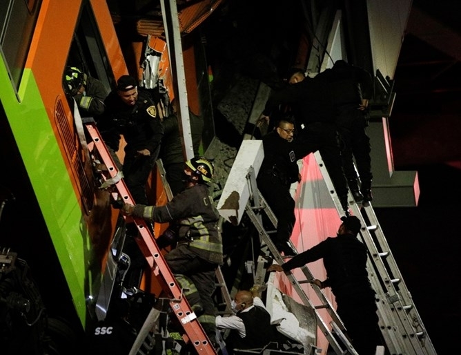 Местната телевизия "Миленио" излъчи драматични кадри, на които се вижда как надлезът на линия 12 се срутва върху колите на намиращия се отдолу път. Медицински екипи и огнеборци издирват оцелели сред руините, предава БТА.