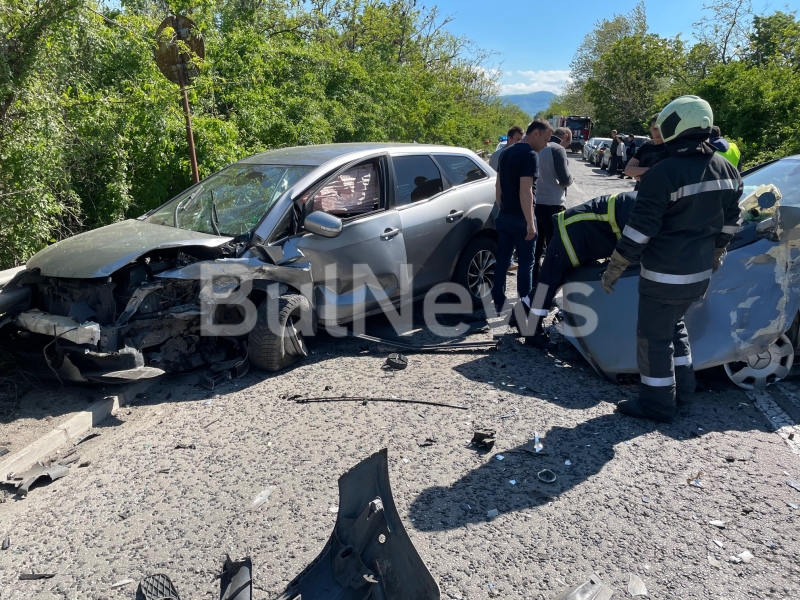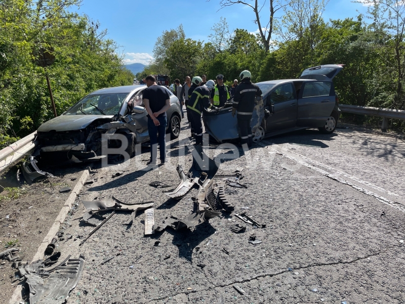 В момента на мястото работи полицейски екип, а движението и в двете посоки е спряно. Очаква се до 30 минути смазаните коли да бъдат преместени и трафикът да да бъде възстановен.