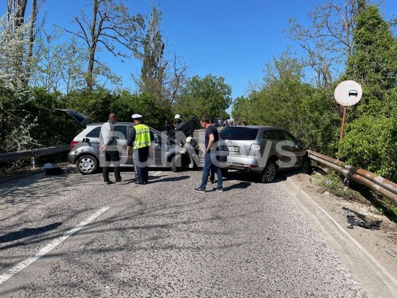 Ударът бил толкова силен, че двете коли се завъртяли на пътя и блокирали трафика.