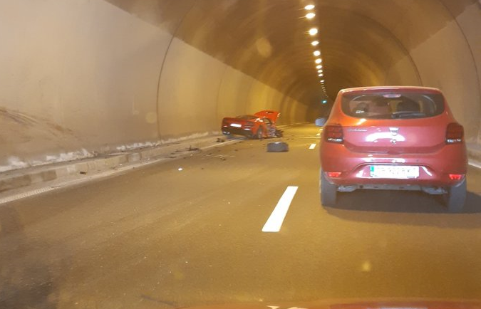 Тежка катастрофа с червено "Ферари" и черен джип е станала в тунела на АМ „Струма“, съобщиха от АПИ.