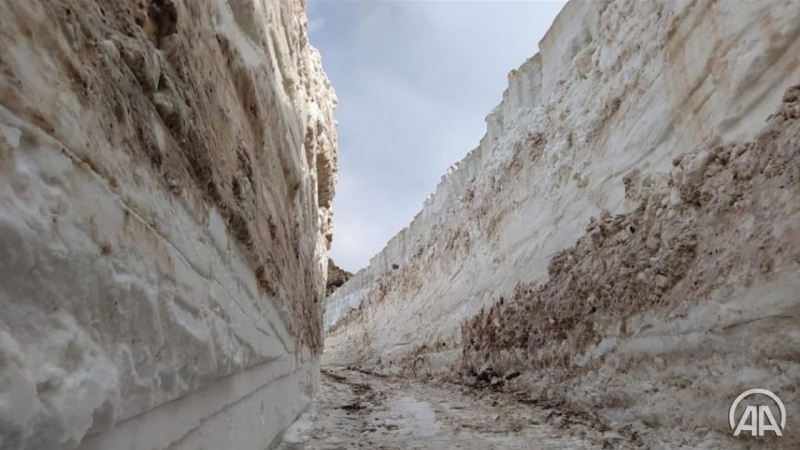 Осемметрова снежна покривка продължава да блокира пътища в югоизточния турски окръг Хаккяри в края на май, съобщава турската държавна телевизия ТРТ Хабер.