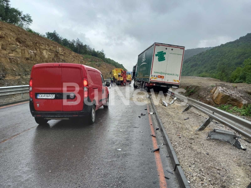 От последните минути! Два камиона се удариха на Е-79 между Мездра и Ботевград, движението е спряно /снимки/