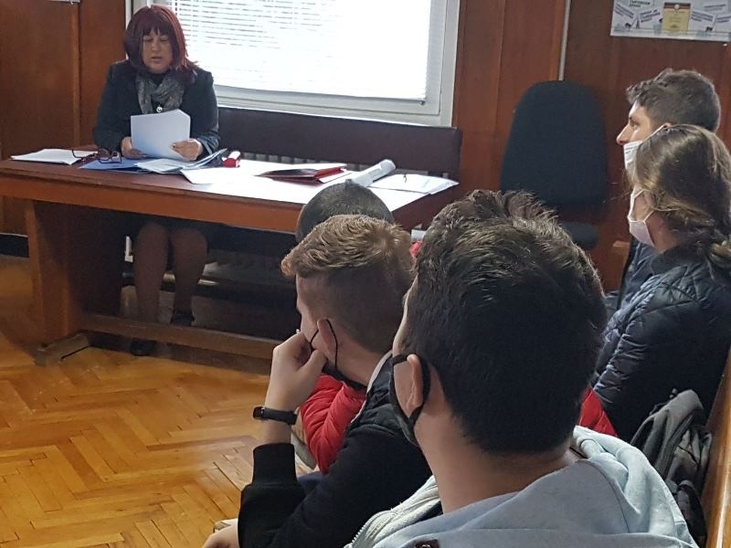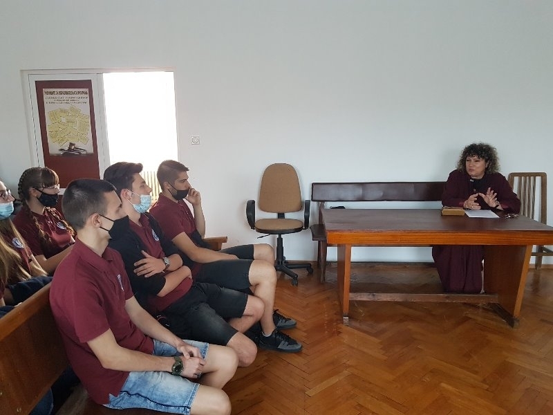 Срещи и разговори с ученици по образователната програма „Съдебната власт – информиран избор и гражданско доверие. Отворени съд и прокуратура“ се проведоха в Съдебна палата в Монтана. На 27 май възпитаници от 11 а клас на Финансова-стопанска гимназия „Васил Левски“ – Монтана изслушаха лекция на тема „Превенция срещу употреба на наркотични вещества. Престъпления, извършвани от наркозависими лица“. Прокурор Лилия Илиева запозна учениците с престъпленията, свързани с производство, разпространение и употребата на наркотични вещества и предвидените от закона наказания. Тя сподели с младежите и конкретни случаи от борбата с разпространението на наркотици, сред които са и дела за разкрити през последната година три нарколаборатории в област Монтана. Възпитаниците на ФСГ зададоха въпроси за професиите с юридическо образование и възможностите за кариерно развитие в съдебната система. На 1 юни съдия Елизабет Кралева запозна ученици от 11-тите класове на Природо-математическа гимназия „Св. Климент“ Охридски“ с разделението на властите според Конституцията на Р България и структурата на съдебната власт. С притчата за цар Соломон, който решил мъдро спора между две жени за майчинството на едно дете, съдия Кралева илюстрира качествата, които трябва да притежават юристите. Младежите зададоха въпроси за насрочването и протичането на съдебните процеси и за връзката между морал и справедливост в създаването и прилагането на законите. В края на срещата учениците се снимаха с тоги на прокурор и съдия и изразиха желание лекциите и разговорите им с магистратите да продължат. При посещенията си в палатата учениците разгледаха и подредената от Окръжен съд и Библиотеката при читалище „Постоянство“ – Лом изложба на стари юридически книги „По силата на закона“.
