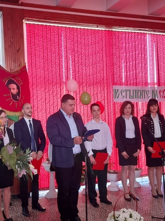 Г-н Добрев отправи своя поздрав към директора г-жа Силвия Михайлова и учениците, възпитаници на Средно Училище „Христо Ботев“ в Оряхово. Всеки учител, присъстващ на празника, получи като комплимент за своята всеотдайност, доброта и оптимизъм цвете.