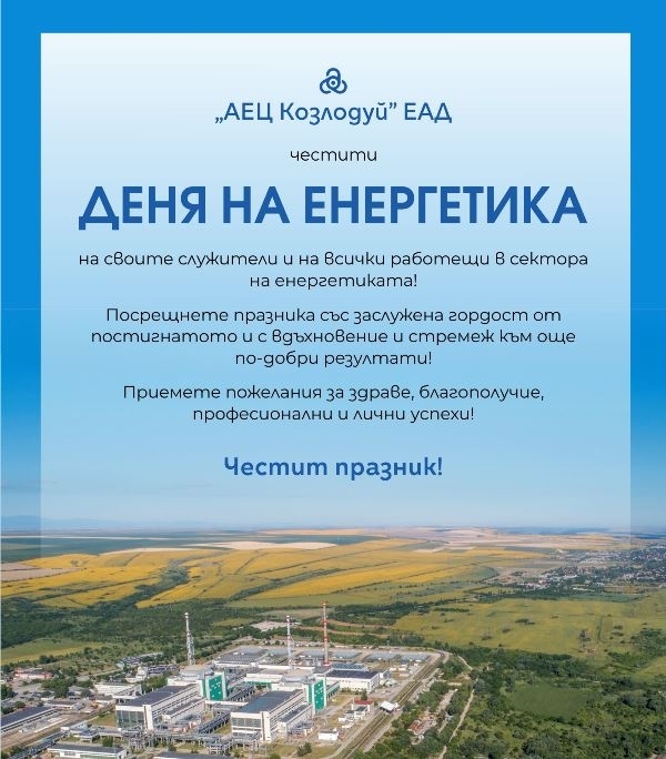 АЕЦ „Козлодуй“ ЕАД честити Деня на енергетика на своите служители и на всички работещи в сектора на енергетиката!