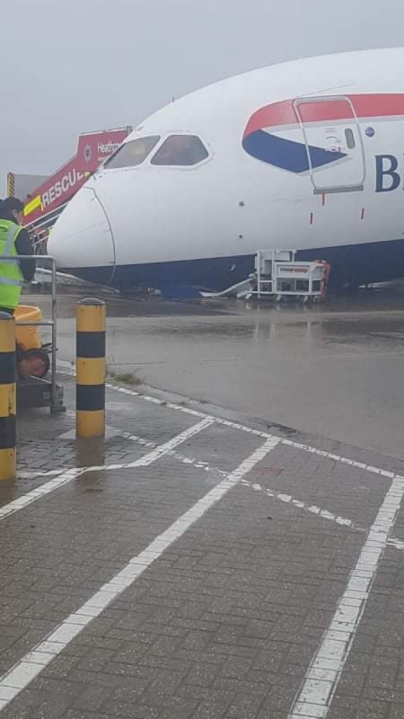 Предният колесник на самолет на British Airways се е счупил тази сутрин на летище Хийтроу, а носът на машината се е разбил в асфалта.