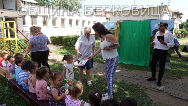 Зам.-кметът на Община Берковица Спаска Георгиева връчи на децата книжки като подарък за приключването на проекта - Книжка за оцветяване „Забавлявам се, играя и накрая всичко зная: Българските празници и обичаи“, „Уроци по писане: Да се подготвим за писане“, „Уроци по писане: Научи се да пишеш цифрите“ и им пожела да обичат книгата и да се стремят към знанието.