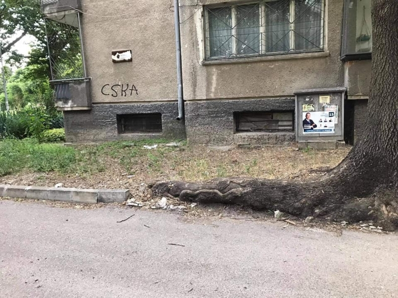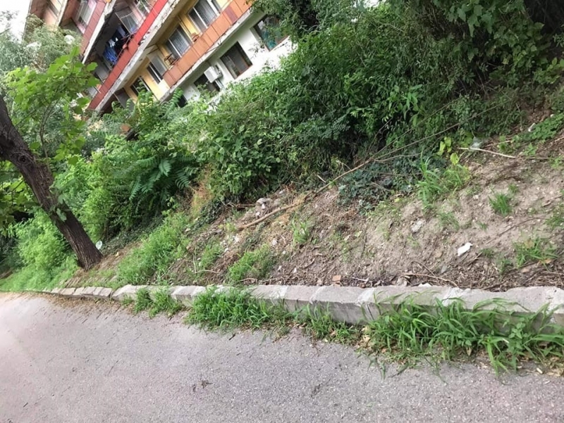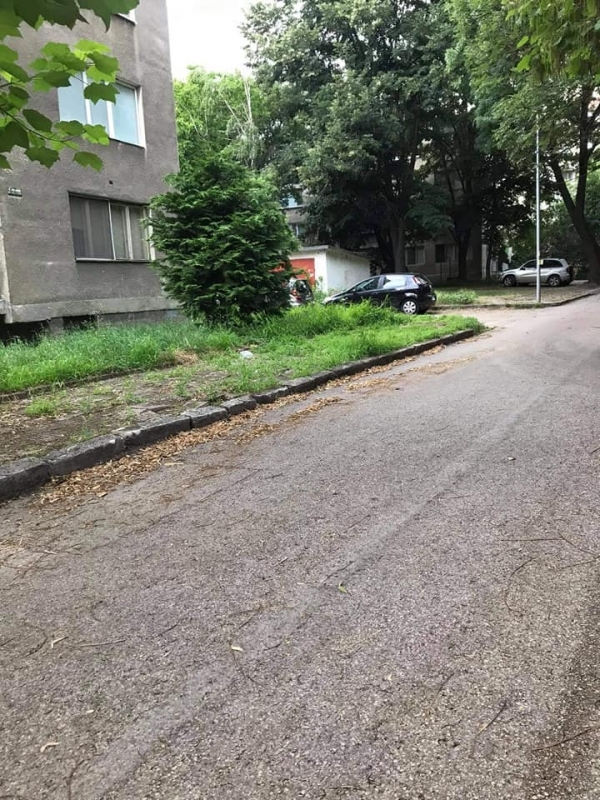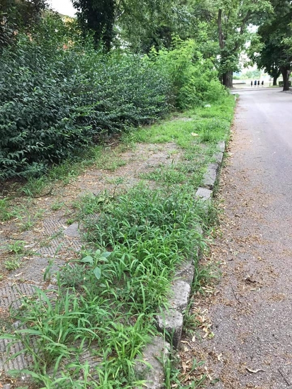 Освен тънещите в бокуци площадки с потрошени съоражения, хората са длъжни да се сблъскват с още една опасност - неизползваеми тротоари, която принуждава майките с колички да вървят по пътя. Млада жена е заснела обраслите с трева пешеходни зони, на които плочките едва-едва се виждат. Така в най-добрия случай майките с детски колички се разминават само с освиркване от шофьорите, тъй като липсата на обозначено място за пешеходци е предпоставка за фатален инцидент на пътя.