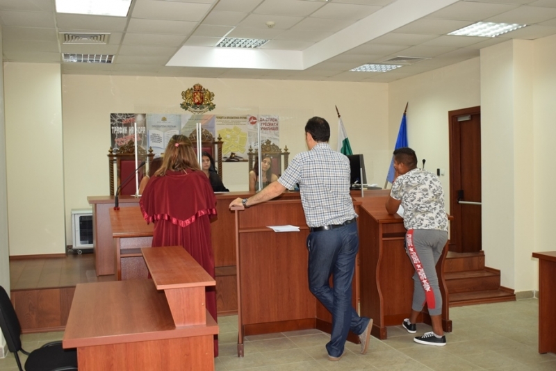 Казусът, който бе разгледан, бе за противозаконно отнемане на тютюневи изделия от хранителен магазин. Учениците изпълниха ролите на прокурора, съдията, адвоката и съдебните заседатели. В ролята на „подсъдимия“ влезе представителят на прокуратурата.