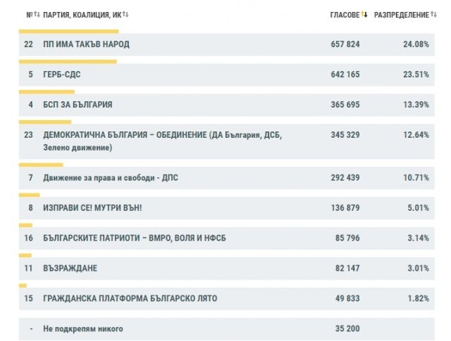 При oбрaбoтeни 100% прoтoкoли ПП "Имa тaкъв нaрoд" пeчeли избoритe c 24.08%.