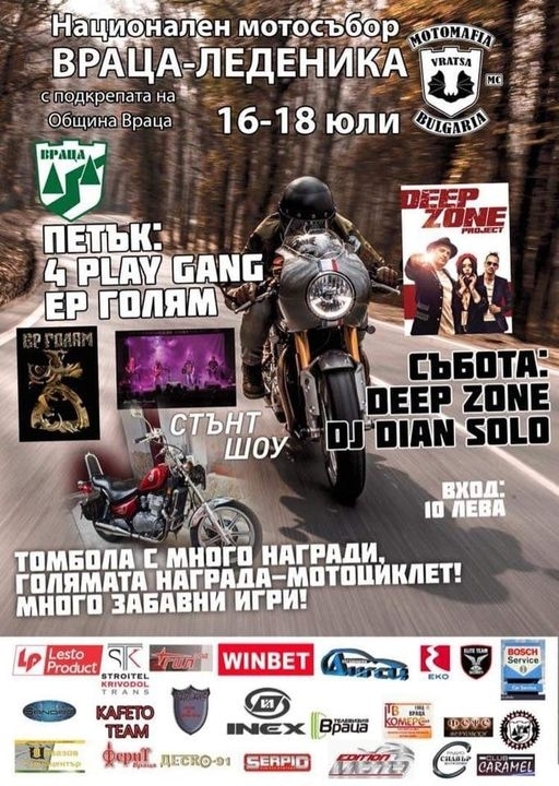 В следващите два дни, Враца ще бъде домакин на Национален мотосъбор „Леденика“ 2021. Събитието ще бъде открито на 16 юли, от 18 часа. Програмата за деня предвижда редица игри, караоке парти и концерт.