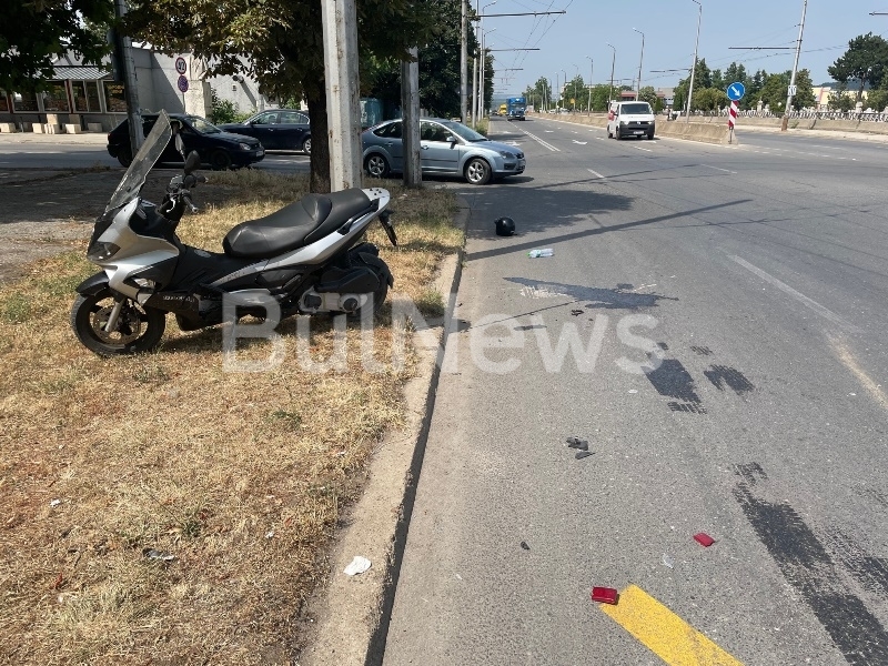 Инцидентът е станал преди минути, на бул. "Мито Орозов". До него се е стигнало след като 30-годишен мъж със скутер "Джилера" подал мигач, за да направи обратен завой, при което идващият "Форд" с врачанска регистрация отнел предимството му. Зад волана на колата била около 30-годишна жена, която е пътувала към светофарите на Стария пазар.