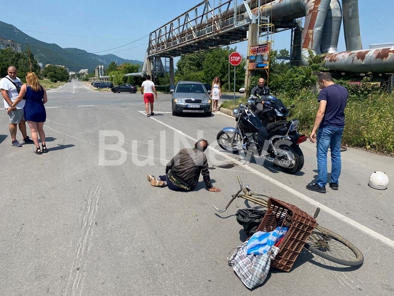 Инцидентът е станал преди минути, на кръстовището между ул. „Георги Апостолов“ и бул. „Васил Кънчов“ в областния център. Млад мъж e управлявал мотор „Кавазаки“ с врачанска регистрация, като се движил по улицата и отивал към индустриалната зона. Той спрял преди кръстовището, за да се увери, че не идват други превозни средства, а когато тръгнал внезапно се появил велосипедистът. Мотористът не успял да спре навреме и ударил 44-годишния мъж с колелото, при което той паднал на пътното платно и останал да лежи там.