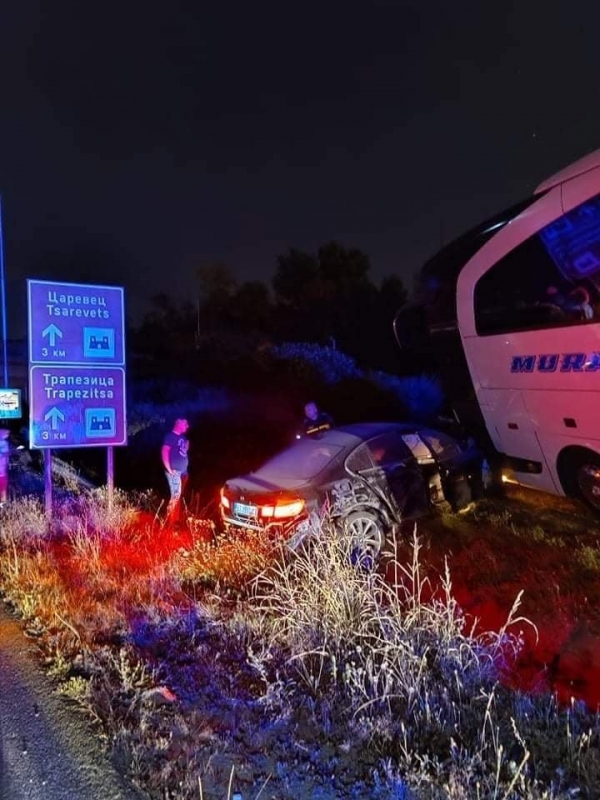 Пострадали няма. Туристите се връщали от Турция. В лекия автомобил са пътували трима младежи.