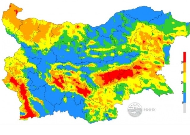 Екстремален индекс за пожароопасност е в сила за територии в 12 области в страната, сочи справка на сайта на Националния институт по метеорология и хидрология (НИМХ).