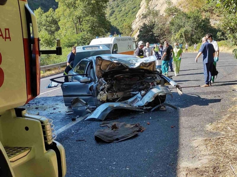 Катастрофата е станала между ТИР и лек автомобил в Кресненското дефиле около 9 ч. По първоначални данни лек автомобил с гръцка регистрация с четирима пътници е излязъл от платното си и се е ударил челно в товарен камион.