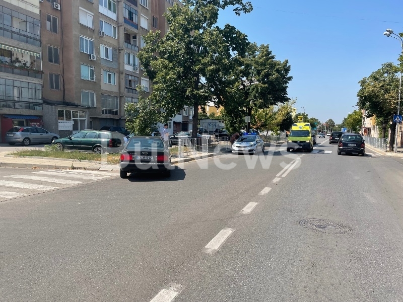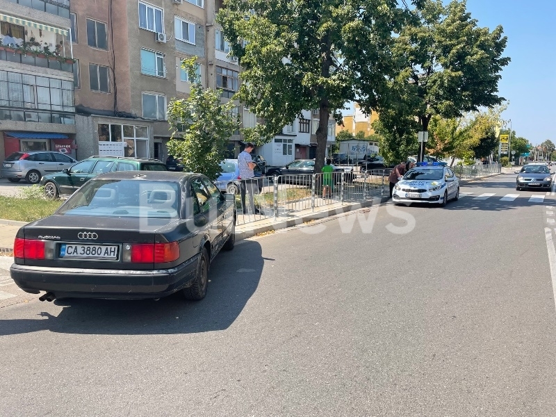 Инцидентът е станал преди минути на бул. „Христо Ботев“. Немското возило със софийска регистрация е било паркирано от дясната страна на пътя, в посока бензиностанция „Аванти“. Нейният собственик е около 70-годишен мъж, който забравил да включи на скорост и колата тръгнала, като преминала в насрещното и се забила в предпазната ограда на тротоара.