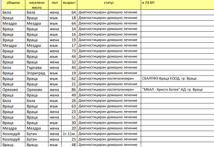 Останалите 23-ма новозаразени се лекуват вкъщи и са в добро общо състояние. Сред тях е момиченце на 1 година и 11 месеца от Бутан. Забелязва се, че все повече млади хора в областта се заразяват с COVID-19, като повечето от обявените днес случаи са на тийнейджъри и млади хора.