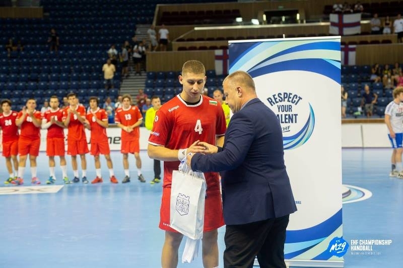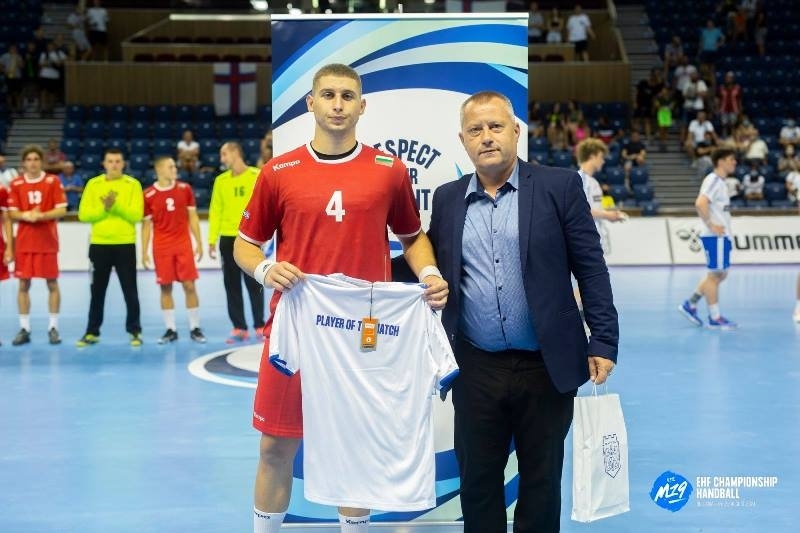 Пивотът на ХК "Локомотив" /Мездра/ Божидар Симеонов (№4) беше определен за най-добър играч в състава на България във втория двубой на представителния отбор на нашата страна на Европейското първенство за младежи до 19 г. (M19 EHF Championship 2021), домакин на което тази седмица е Варна.