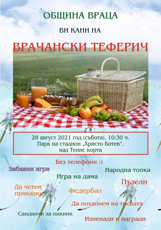 Община Враца има удоволствието да ви покани на „Врачански теферич“, съобщиха от местната управа. Целта на събитието да е продължи семейната традиция за пикник на открито, като темата е „игри на асфалт“.