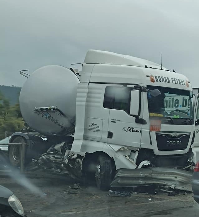 От АПИ съветват шофьорите да се движат с повишено внимание и съобразена скорост, тъй като на мястото има и разлято гориво от катастрофиралия ТИР.