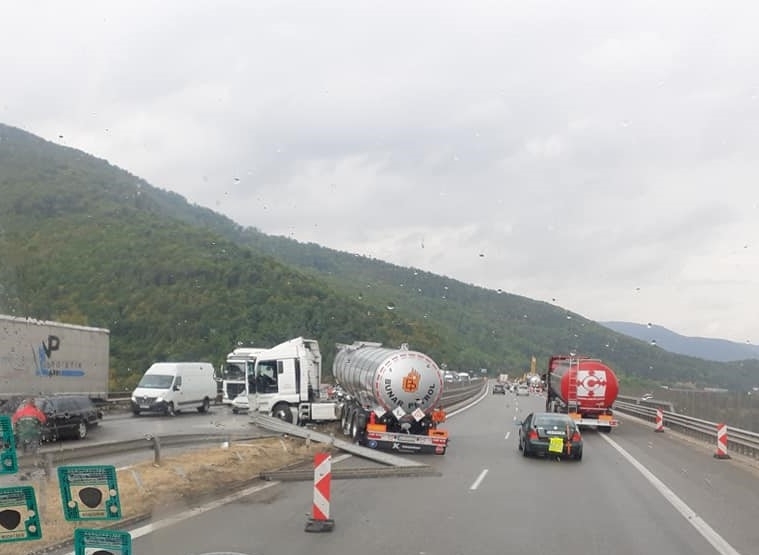 Катастрофиралият ТИР е блокирал скоростните ленти и в двете посоки, като временно движението се осъществява в активните и аварийните.