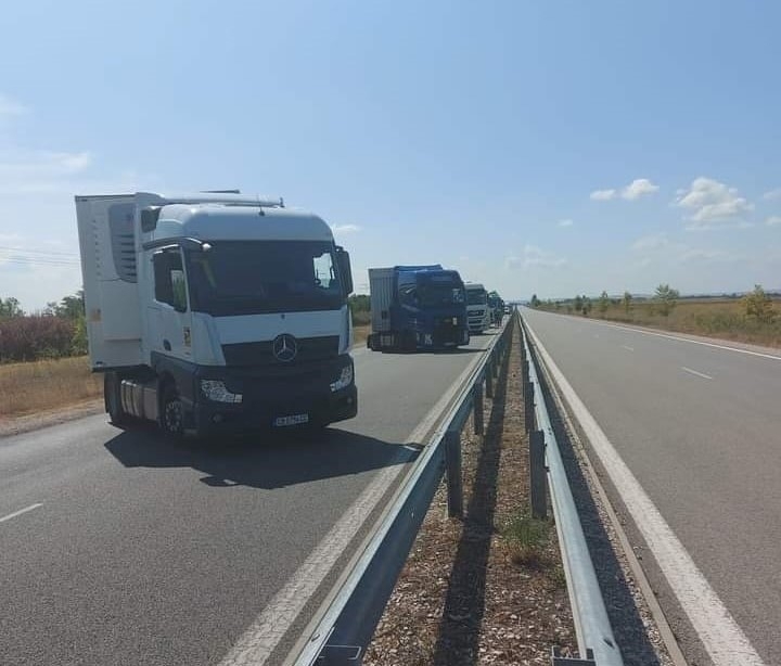 Шофьорите протестират срещу опашките и дългото чакане за преминаване през Граничния контролно-пропускателен пункт. За кратко блокадата спря и движението на леките автомобили.