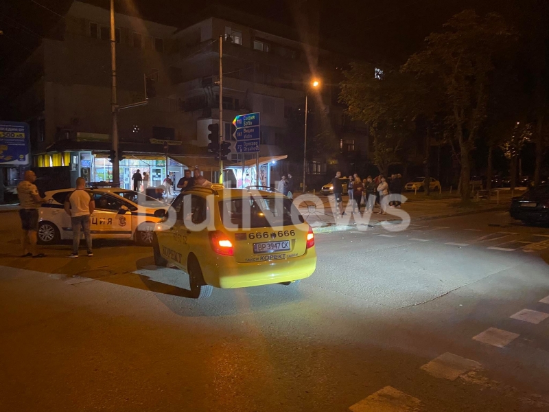 При среднощния пътен инцидент няма пострадали хора, но пътуващите в таксито са силно стресирани, а материалните щети по возилата са сериозни.