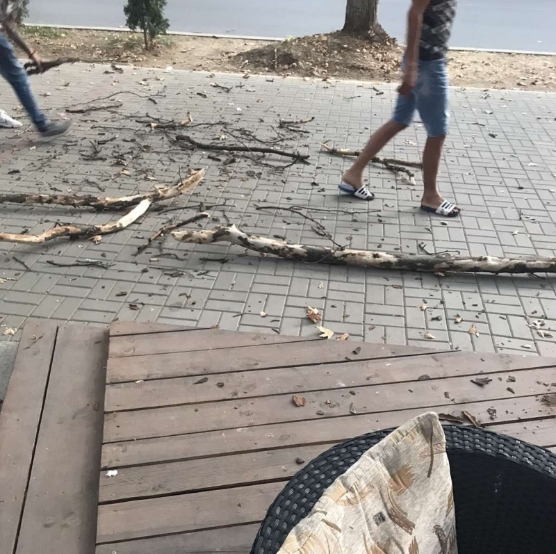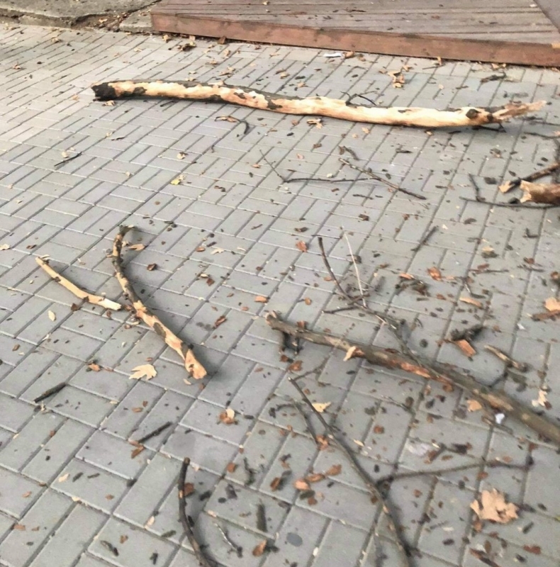 “Детето си вървеше по тротоара и клонът се стовари върху него. То се държеше за рамото и видимо се беше уплашило доста. Аз предложих да извикат линейка, но родителите отказаха /може и да не са му родители/ – хората, които бяха с него. Клонът падна и го закачи, но ако беше паднал директно върху него, не знам…доста хора се притекоха на помощ. Синът на собствениците на кафенето премести бързо клона от мястото на инцидента. Той падна от височина около 10 метра”, разказа за неприятната случка очевидец.