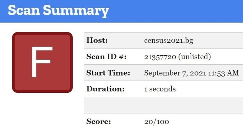 "На 9 септември установихме, че са положени големи усилия за защита на сайта на националната статистика и тя се е подобрила от най-лошото F на С. Все още не е перфектното състояние, но е стъпка в правилната посока. На 10 септември прегледах историята на сигурността на сайта на НСИ и този на преброяването. Резултатът е, че и двата сайта са поддържали ниво от F през последните години", каза Дженкинсън.