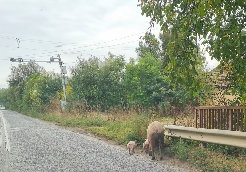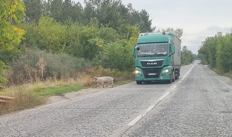 Мрежата прегря! Прасета се разхождат по пътя край Алтимир /снимки/