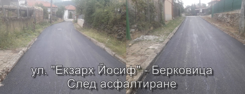 Вчера, 30.09.2021 г., приключи асфалтирането на ул. "Екзарх Йосиф" и предстои асфалтиране на ул. „Рила“ в Берковица, съобщиха от управата на града под Ком.