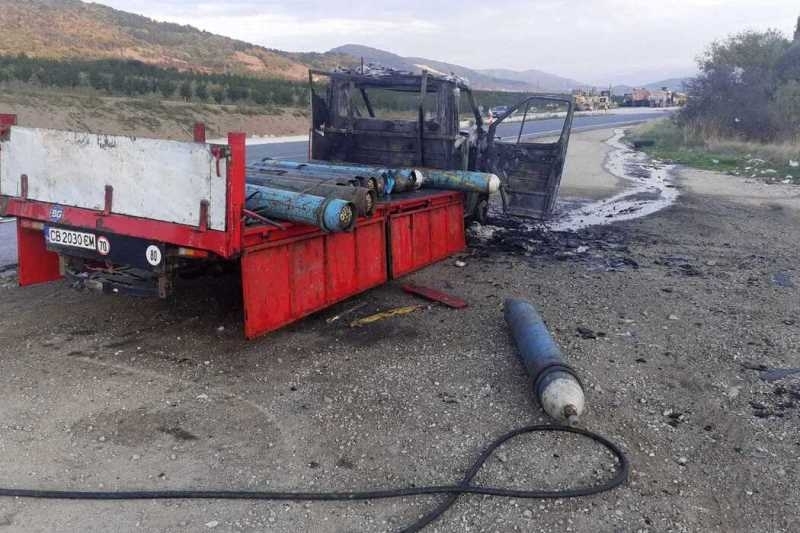Запалил се е камион "Мерцедес", който е бил натоварен с 15 големи бутилки с кислород.
