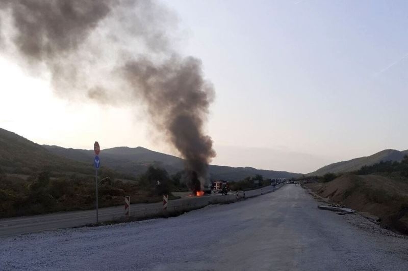 Камион изгоря на главeн път Е-79 между Мездра и Ботевград, научи BulNews.