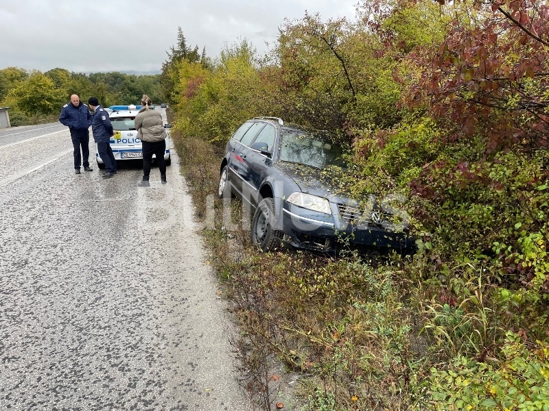 Инцидентът е станал преди минути, преди "Вичов хан". Шофьор с лек автомобил "Фолксваген Пасат" с врачанска регистрация е излизал от областния център, когато внезапно возилото се поднесло, преминало в насрещното и паднало в храстите край пътя. Вероятно водачът е загубил контрол над управлението, тъй като колата е с летни гуми.