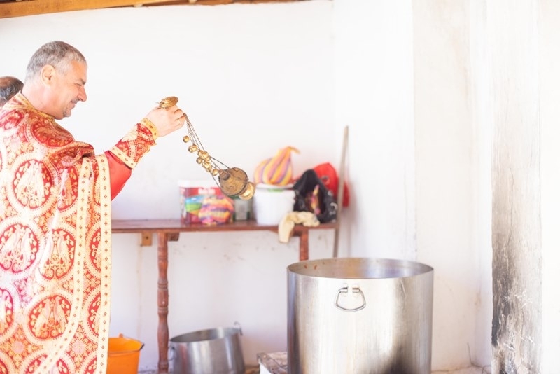По-сетне о. Антон прекади обредните хлябове и овчата курбан чорба, приготвена от майстора готвач Димитър Пунчев от Елисейна, известен в района на Искърското дефиле като Мито Кръчма̀ро. Тази година курбана за здраве на селото дадоха журналистът Борислав Радославов и неговата чаровна спътница в живота Илиана, които бяха довели в храма и своя първороден син - 3-годишния Радослав.