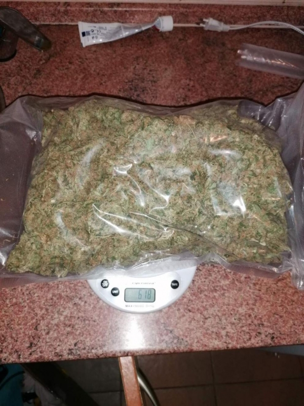 Последвало претърсване в жилището, което той обитавал под наем. Там са открити множество пликове, съдържащи тревиста маса и вещество на бучки и прах, както и сума пари.