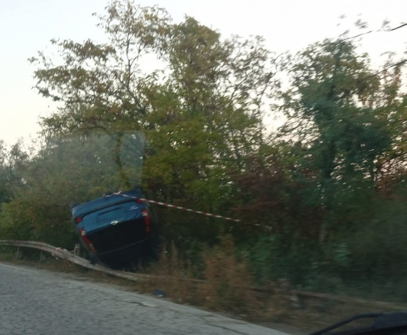 Инцидентът е станал през изминалата нощ, около 1.15 часа. Лек автомобил, управляван от 51-годишен шофьор се забил е крайпътна мантинела, след което се преобърнал извън пътното платно.
