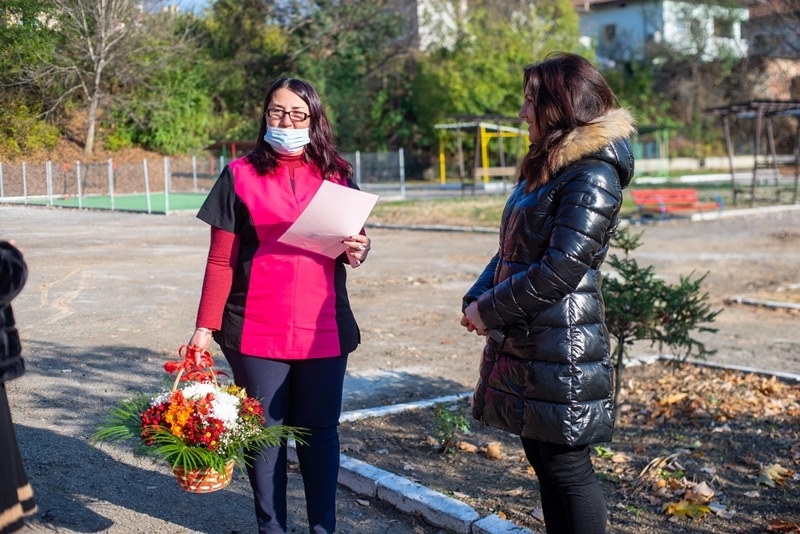 По този повод заместник-кметът „Икономическо развитие, социални и хуманитарни дейности“ Нели Минева връчи на директора на детската градина Диана Вутова поздравителния адрес, а началникът на отдел „Образование, социални дейности и здравеопазване“ Елена Нанова й подари кошница с цветя.