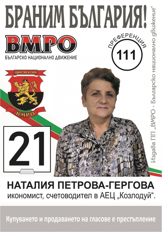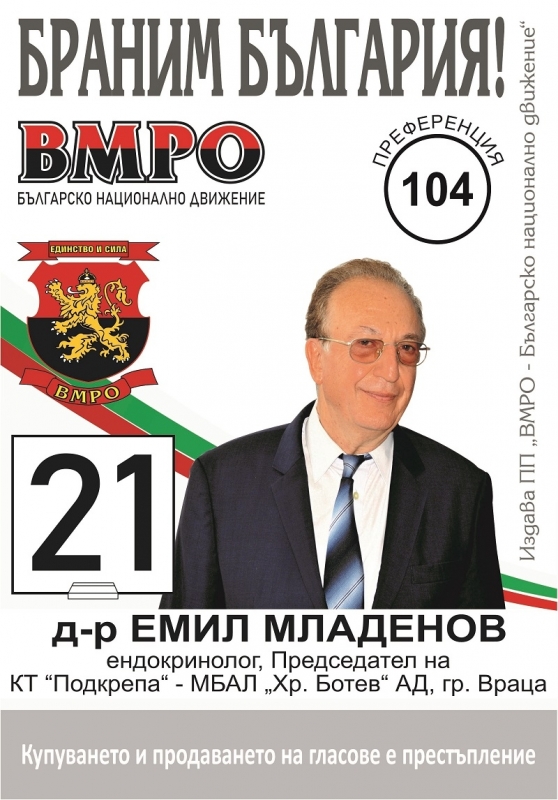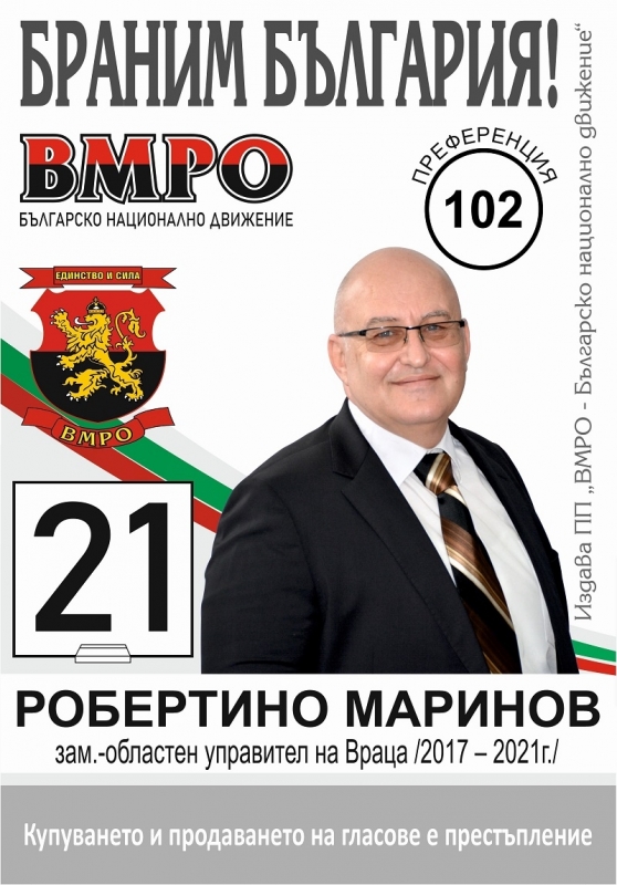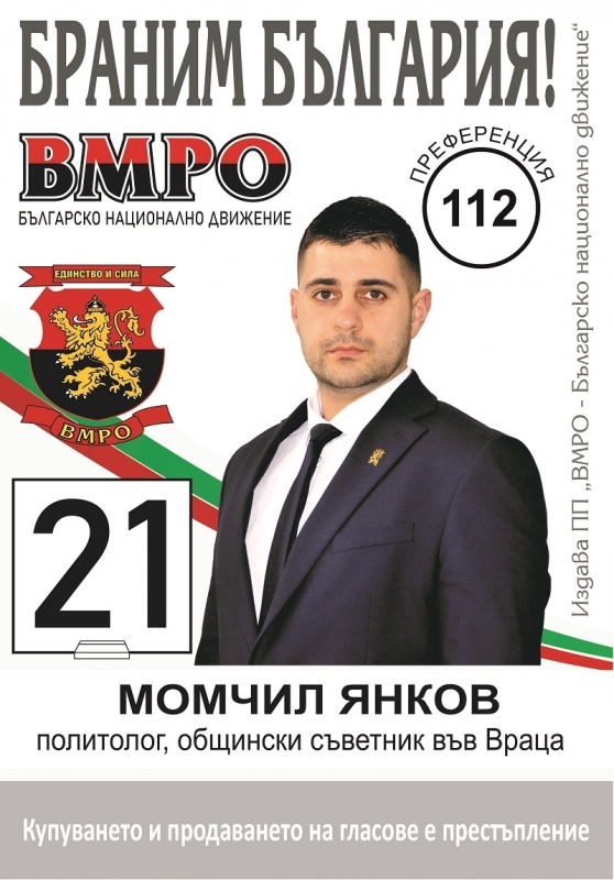 Професионализмът има значение! Листата на ВМРО за Враца е съставена от доказани професионалисти в областта на културата, науката, образованието, социалната политика, здравеопазването, отбраната и въоръжените сили, икономиката, енергетиката, местното самоуправление и централната власт. Тя е съчетание от опит и младост. В нея са включени само местни хора от Врачанския край, с безупречна репутация, чиито патриотизъм не подлежи на съмнение. ВМРО е с номер 21.