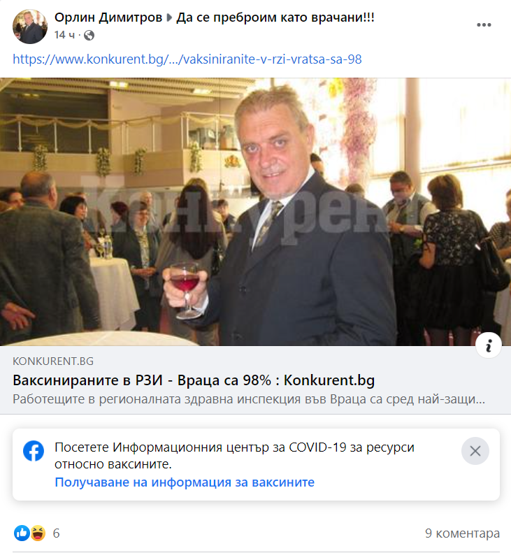 Директорът на РЗИ-Враца Орлин Димитров отново започна да обижда свои опоненти във фейсбук, видя репортер на агенция BulNews.