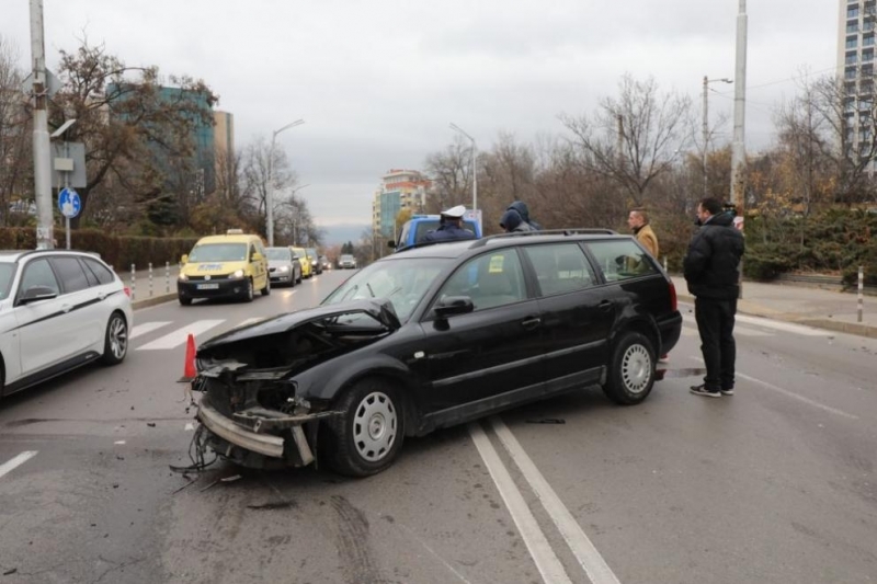Катрастрофа между два леки автомобила е станала на кръстовището на бул. „Черни връх" и бул. „Джеймс Баучер“, съобщиха от СДВР. Инцидентът е станал малко след 12 часа. Ударили са се кола и джип, който е изхвърчал и се е врязал в пешеходни стълби, в близост до тротоар.