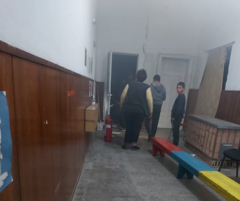 В момента гласуването там е преустановено до второ нареждане, а членовете на комисията, урната и изборните книжа са в коридора на бившето училище.