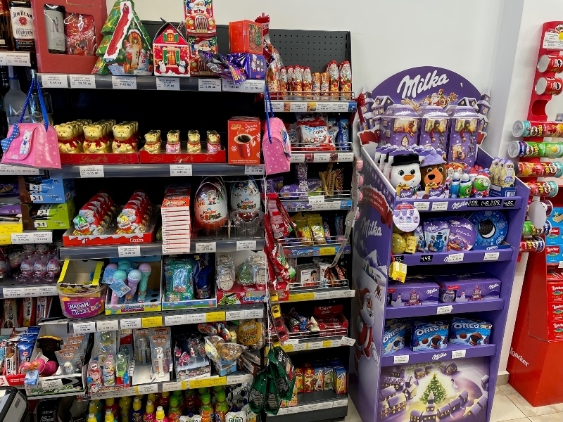 В него може да намерите прясно месо, деликатеси, млечни храни и свежи зеленчуци, които да ви осигурят вкусната трапеза на предстоящите празници. В богатия асортимент от стоки може да откриете и козметика, препарати, алкохол, безалкохолни напитки и цигари.